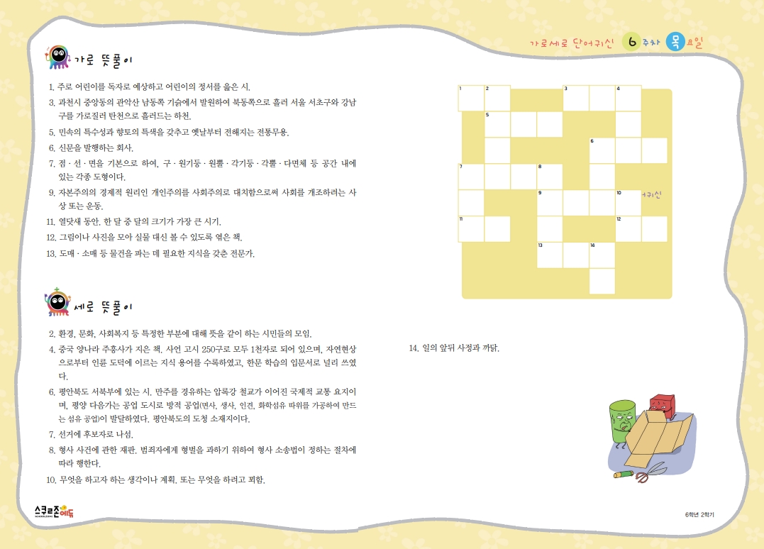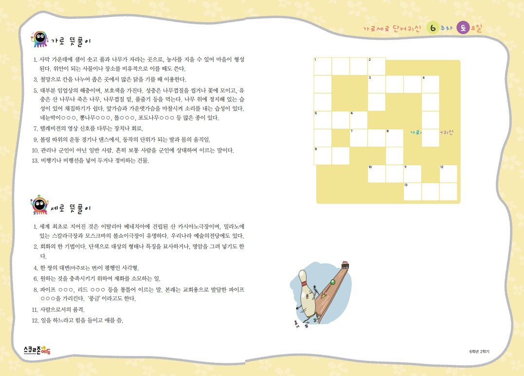 가로세로 단어귀신 6-2 6주차 시트지(PDF / 12P / A4사이즈)