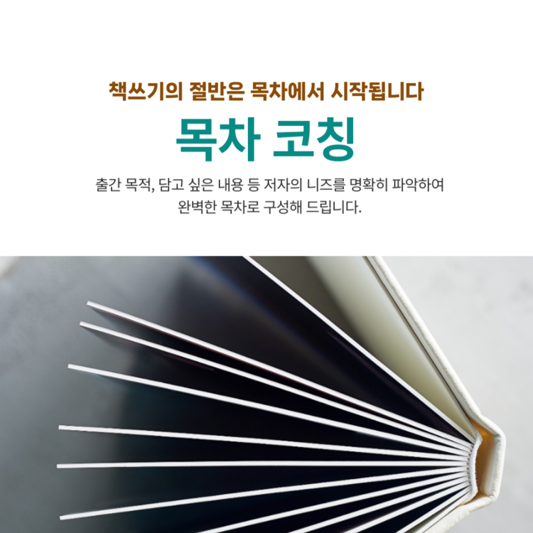 목차 설계 및 피드백을 통해 목차를 완성해 가면서 집필 가이드도 제공합니다.