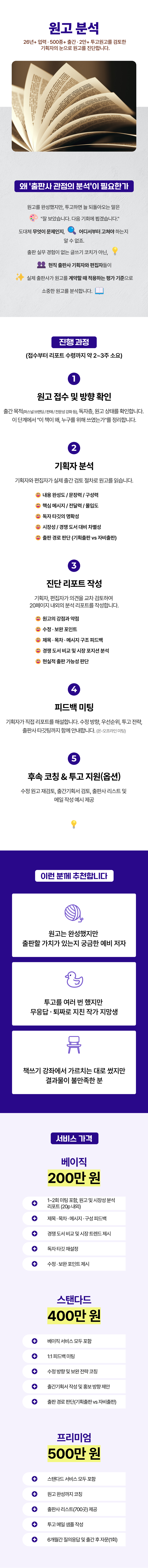 목차 설계 및 피드백을 통해 목차를 완성해 가면서 집필 가이드도 제공합니다.