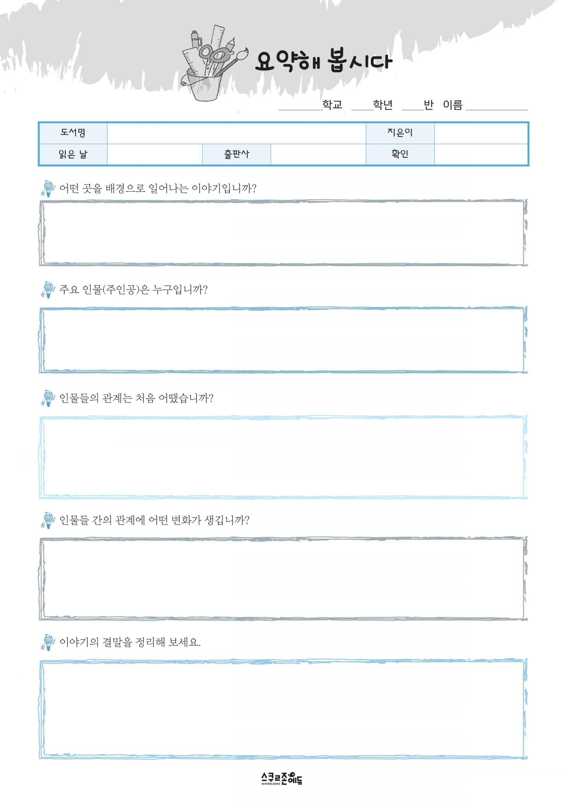 독서기록장(고학년용) 시트지 모음 3