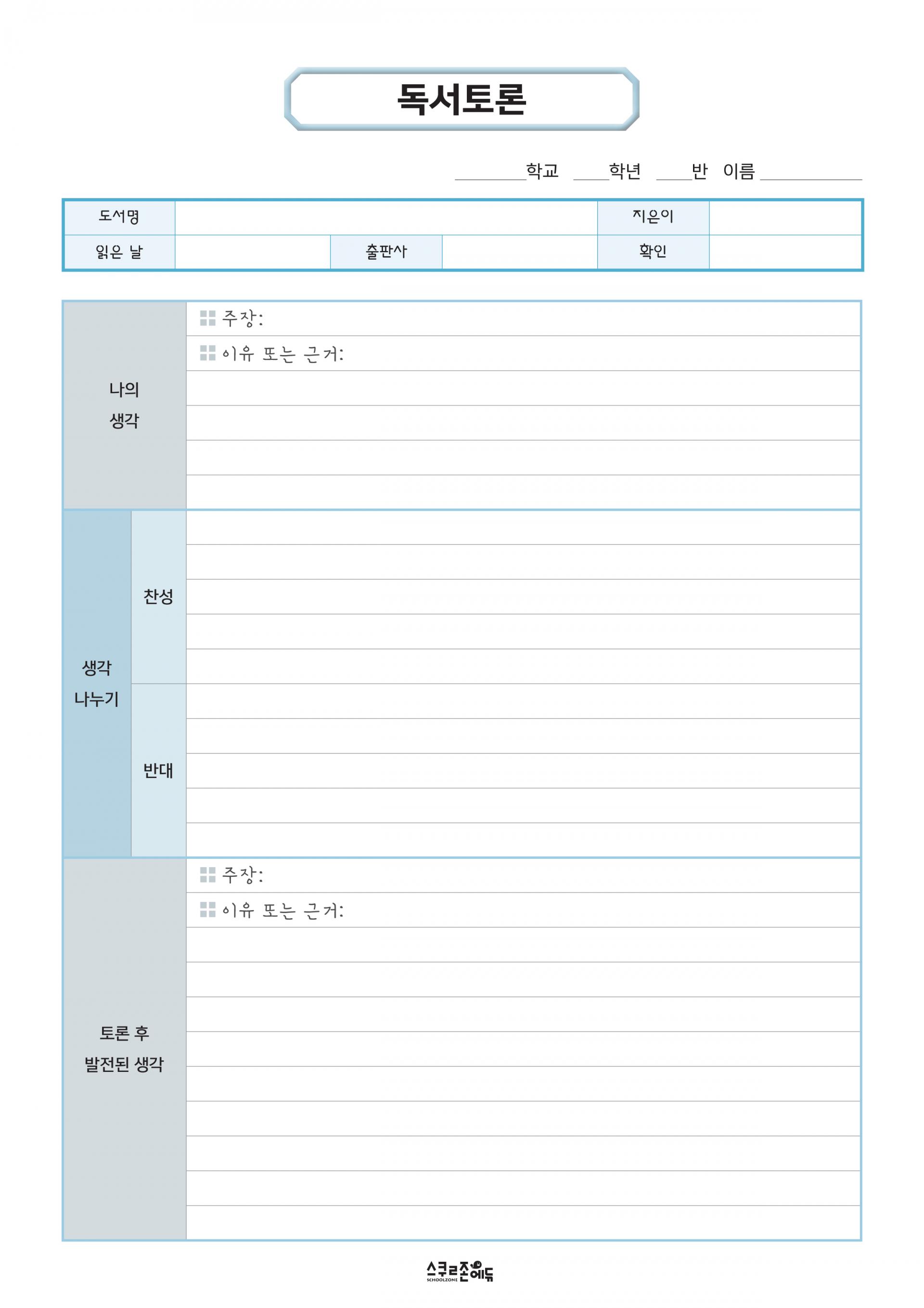독서기록장(고학년용) 120여 가지 시트지 중 8가지 양식 모음 4