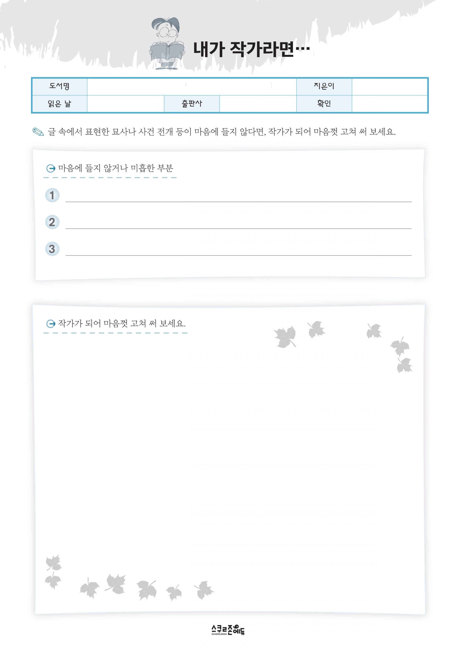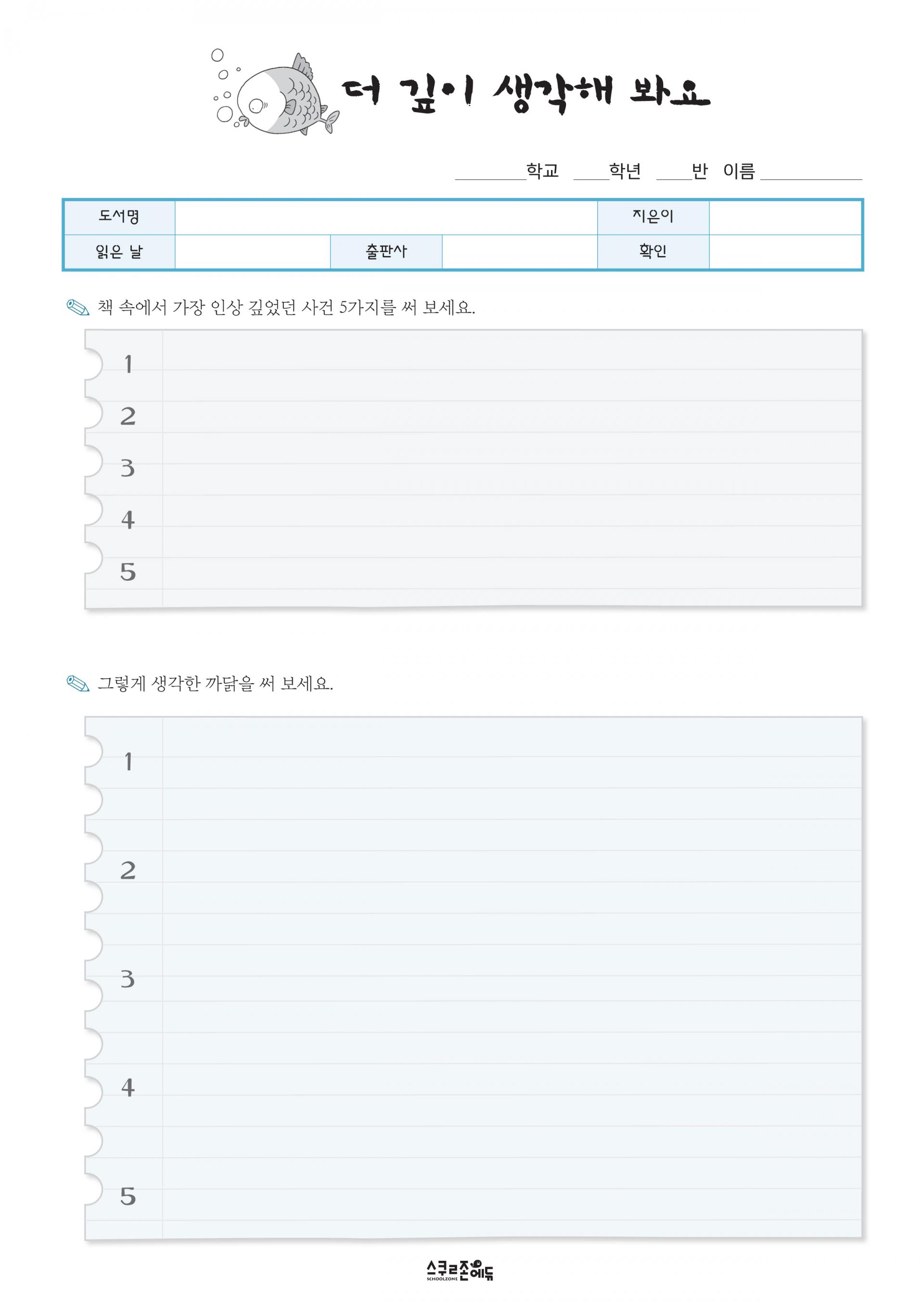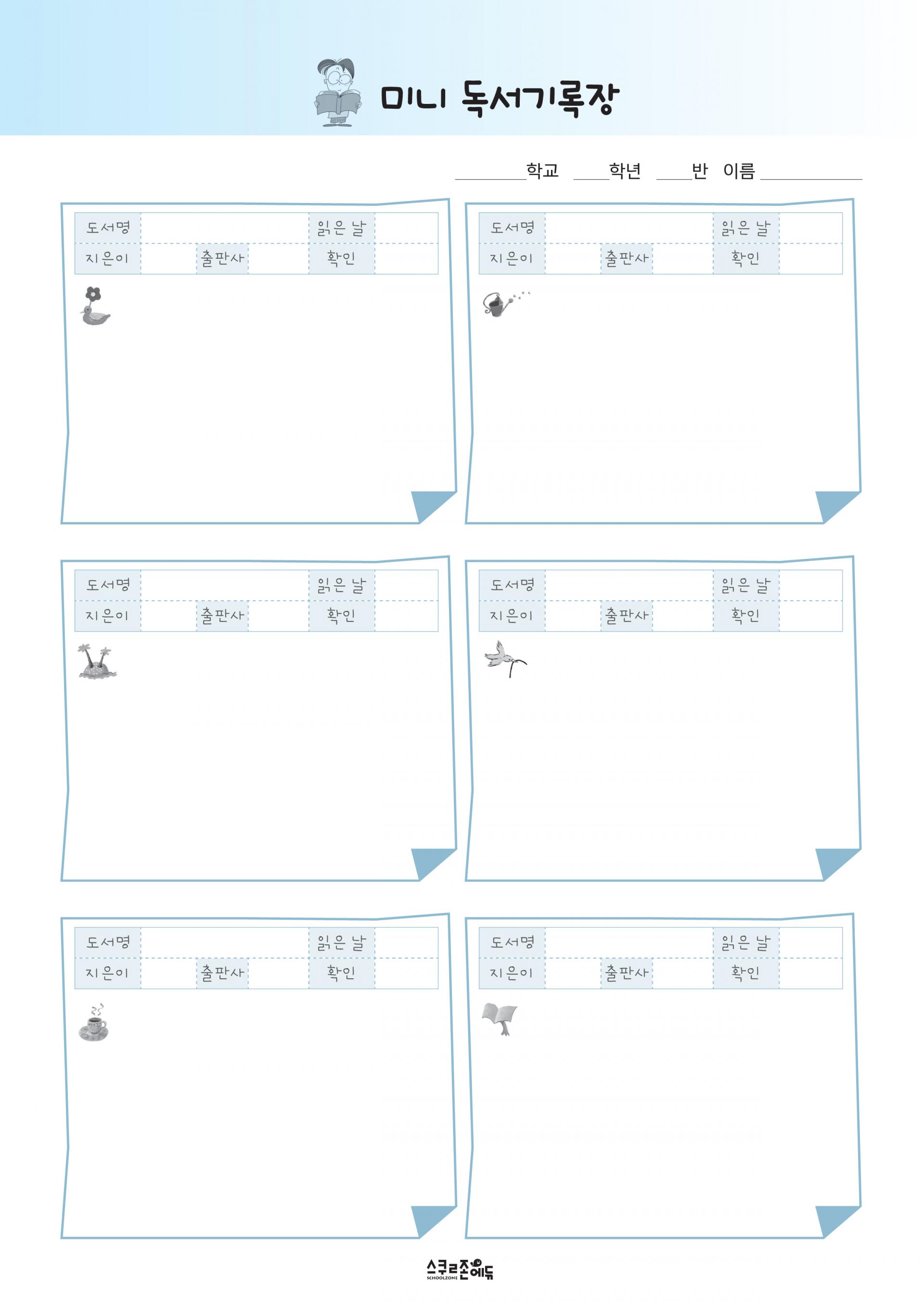 독서기록장(고학년용) 120여 가지 시트지 중 8가지 양식 모음 5