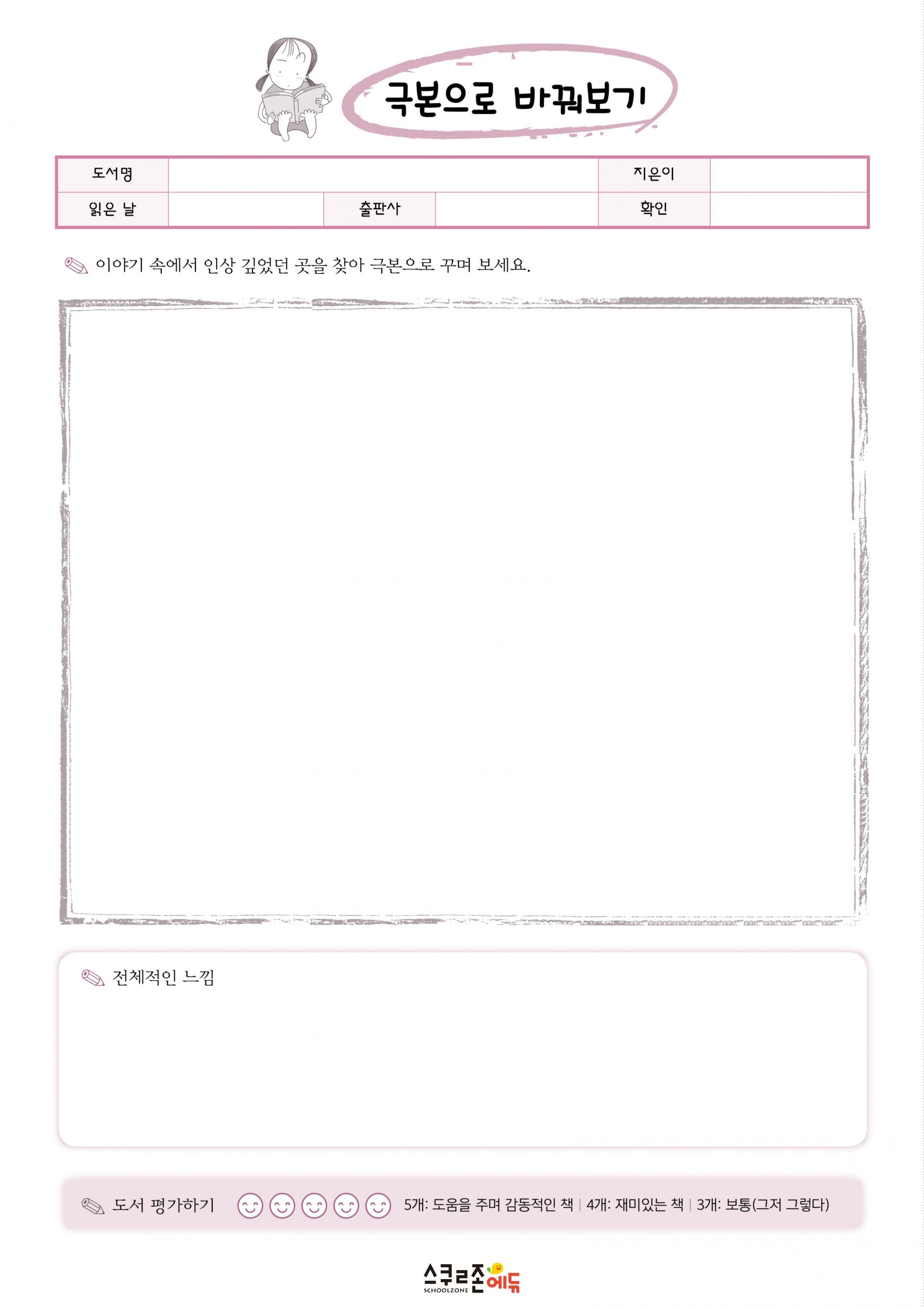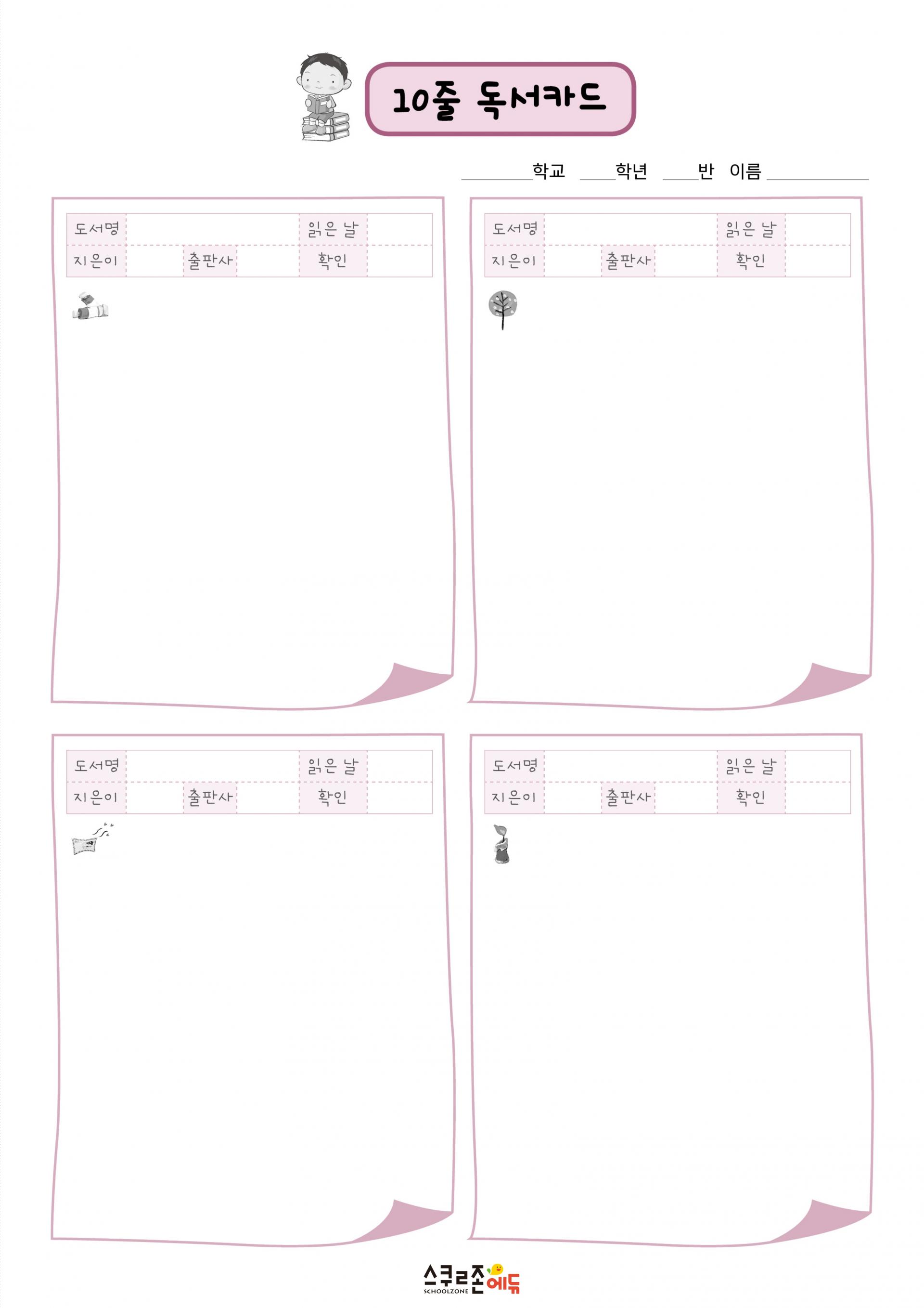 독서기록장(저학년용) 120여 가지 시트지 중 8가지 양식 모음 3
