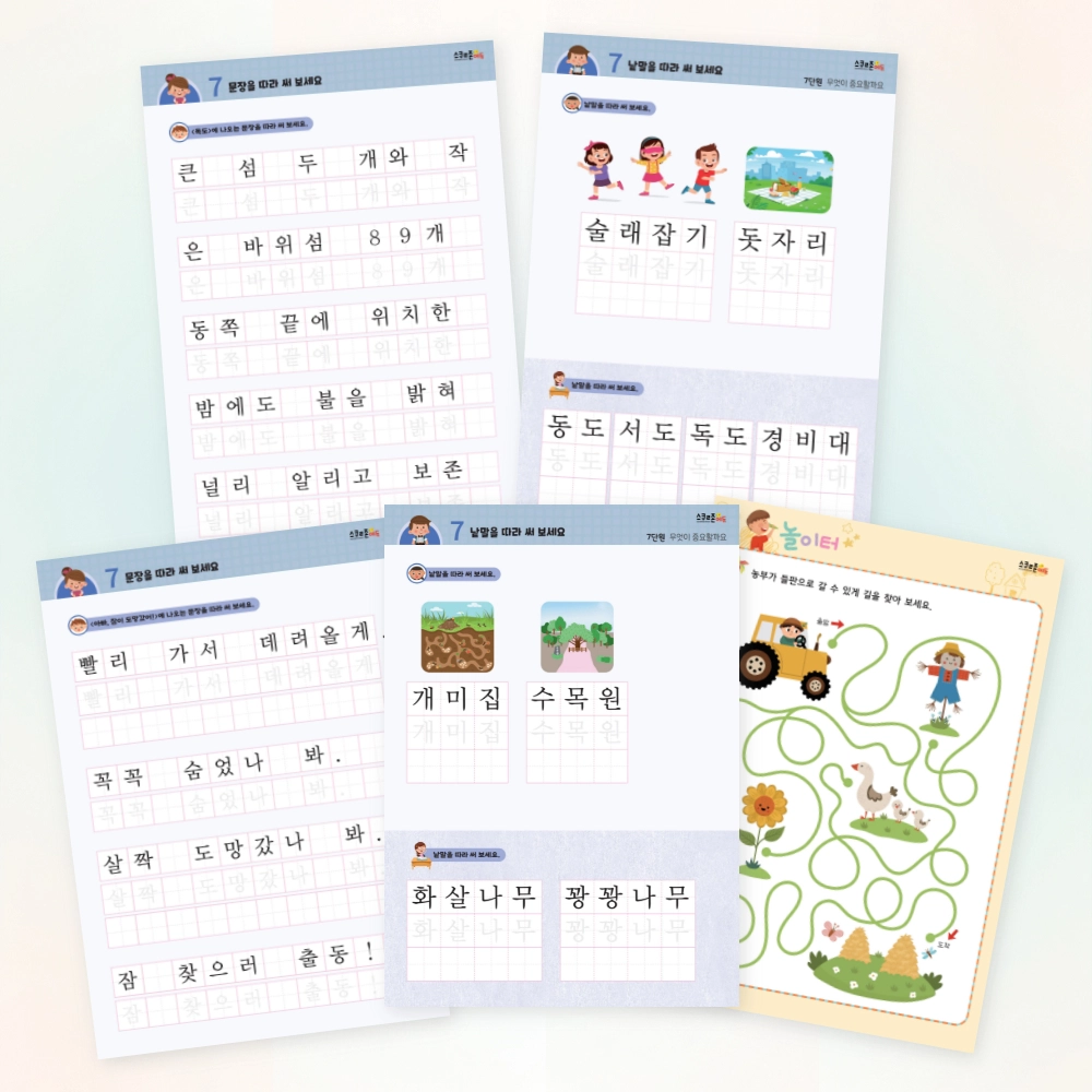국어 교과서 따라쓰기 1-2 시트지 모음 7(PDF / 7p / A4사이즈)
